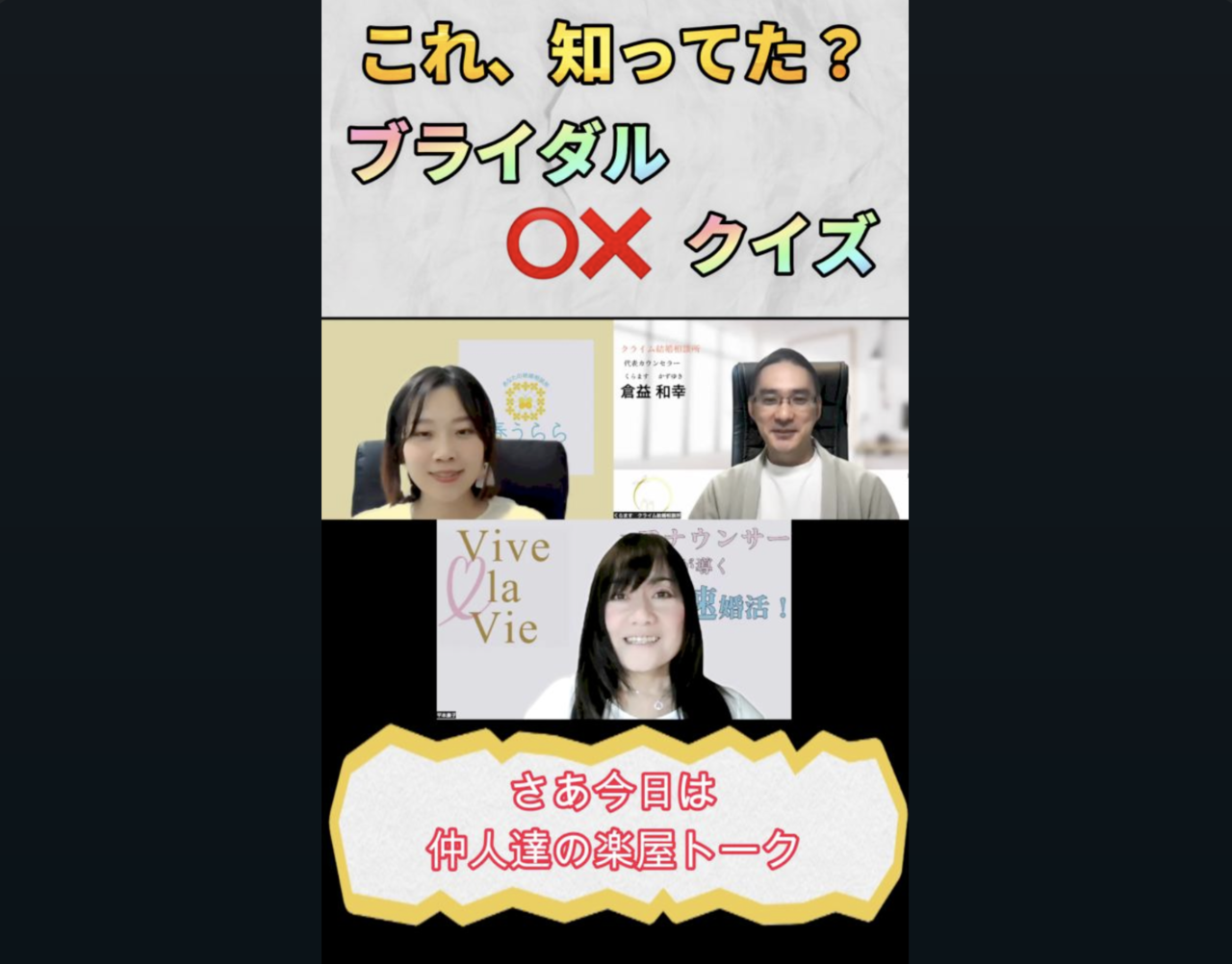 そんなあなたの知識を試す、楽しいショート動画が完成しました! 今回は、仲人3人が「ブライダル〇✕クイズ」に挑戦します!
