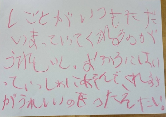 赤色のクレヨンで書かれていたのは、こんな言葉でした。