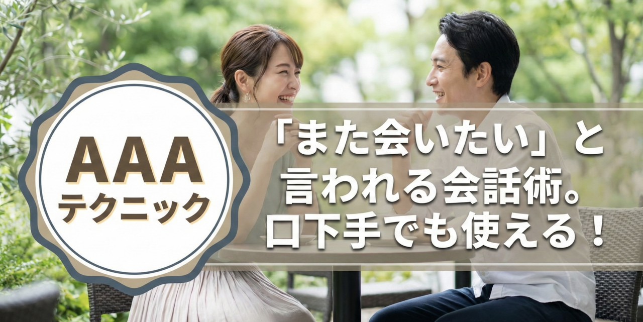 たった一つ、**「AAAテクニック」**という魔法の公式を知るだけで、気まずい時間は消え去り、「ぜひまた会いたいです!」と言われるようになります。