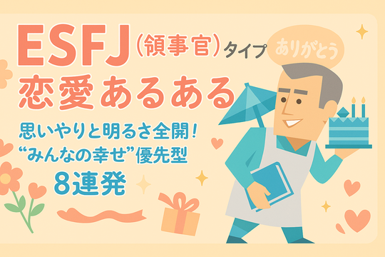 話題の「MBTI診断(16Personalities)」、その中でも「共感力と気配りのプロ」「ムードメーカー」と評判のESFJ(領事館)の恋愛あるあるですが、恋愛となると、つい“気を回しすぎ”たり、“優しすぎて損”したり。実は“人情の塊”な一面もたくさん!