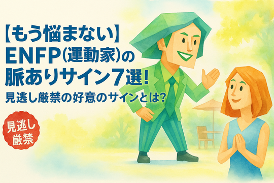 ENFP(運動家)の脈ありサインは、情熱的で、ストレートで、そして何よりも「君との未来は最高に楽しい!」というワクワク感に満ちています。彼の冒険に一緒に飛び込む勇気があれば、毎日が輝くような関係を築けるでしょう。