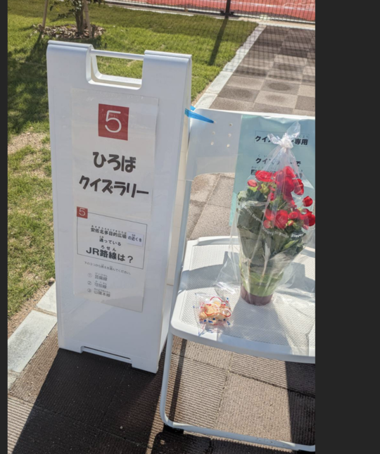 全問正解し、景品に可愛らしいお花とお菓子をいただきました。 息子も自分で頑張った成果に大満足の様子。こうした小さな成功体験が、子どもの自信に繋がっていくのかもしれませんね。