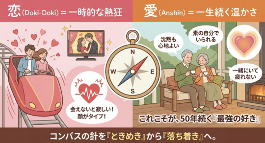 これこそが、50年続く長い結婚生活を支える**最高の「好き」**です。
