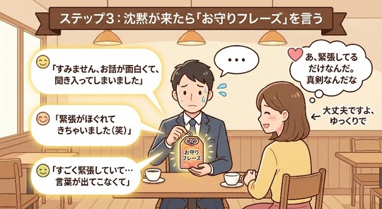 沈黙したら**「緊張しています(笑)」**と正直に言う。