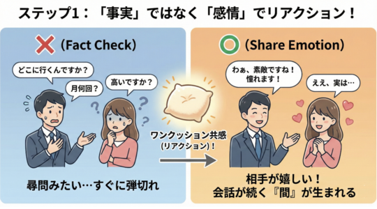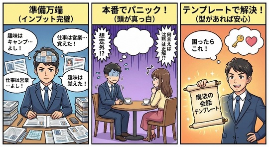 今日は、アドリブが苦手な方でも大丈夫。 **「沈黙」を「盛り上がり」に変える、会話のカンニングペーパー(テンプレート)**を伝授します。