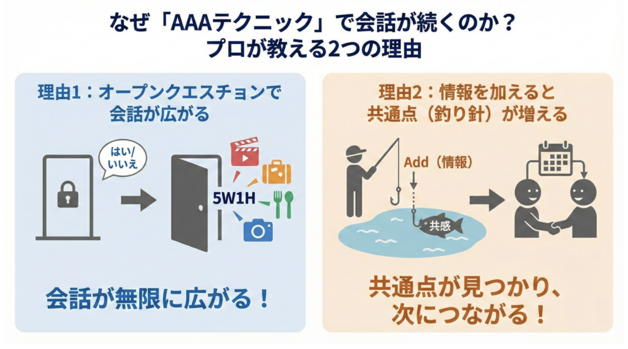 今日は、誰でもすぐに使えて、お相手との距離がグッと縮まる**「最強の会話術」**をお伝えします。