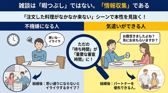 ここで相手がどういう「雑談」をするかで、結婚後の生活が見えます。