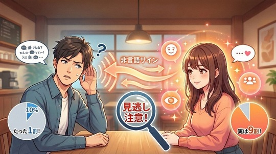 残りの9割は、 表情、視線、声のトーン、しぐさ、雰囲気 といった「非言語」の情報です。
