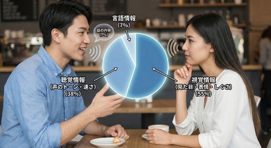 残りの9割以上は、 「どんな表情で」「どんな声色で」 話しているかという**「非言語」の情報**なんです。