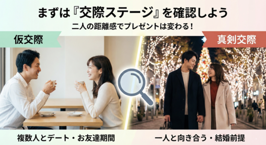 まだお互いを知っていく段階の「仮交際」。 この時期のプレゼントのキーワードは**「重くない」**こと。