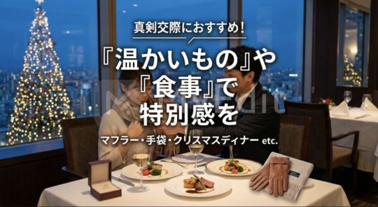 冬の定番ですが、実はこれが一番のおすすめです。 サイズを気にする必要がなく、デートのたびに身につけてもらえるので、**「一緒にいる時に暖かさを共有できる」**というメリットがあります。