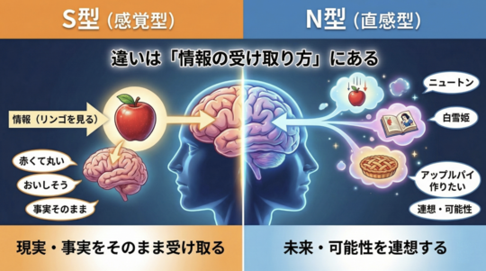 前回の「EとI(外向・内向)」に続き、今回はMBTI診断で最も重要とも言われる 「S」と「N」の違いについてお話しします。