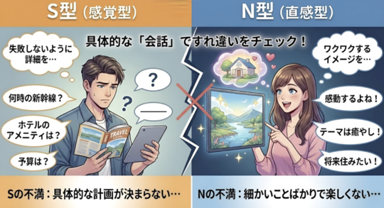 Nの不満: 「(Sは)細かいことばかり気にして、全然楽しそうじゃない」