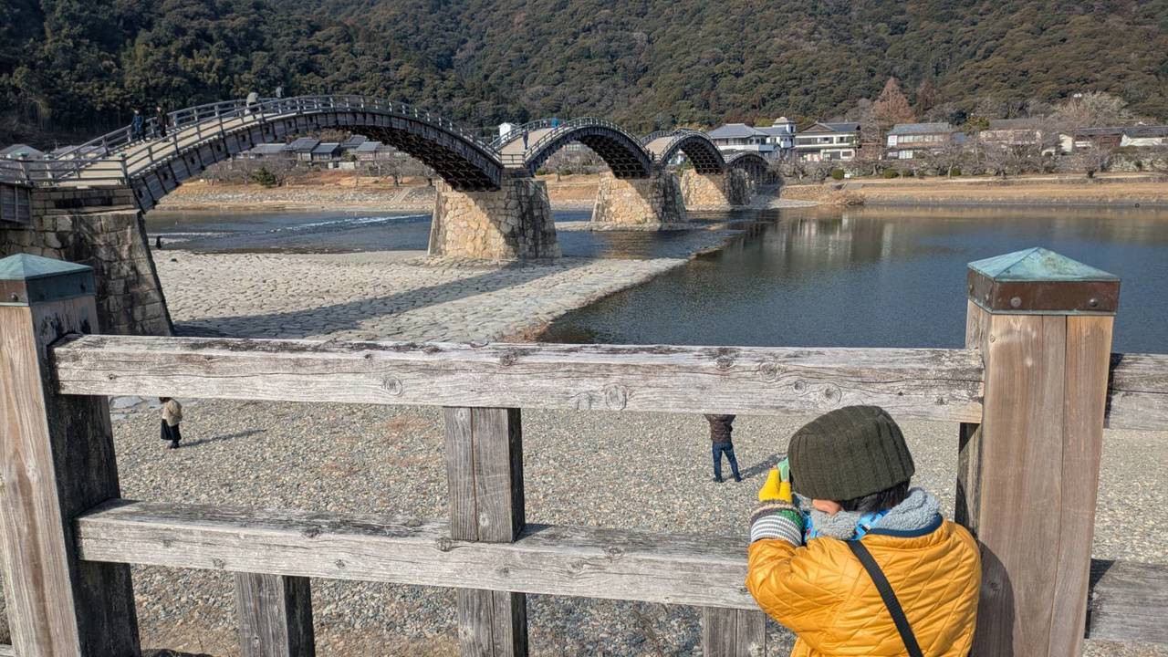 休日に4歳の息子と電車で岩国の錦帯橋へ行ってきました。