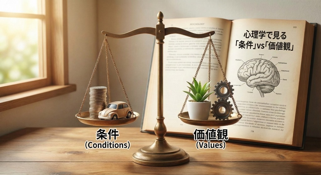 「条件」は減点されていきますが、「価値観」の合致は加点され続けます。 一生を添い遂げるパートナーに必要なのは、間違いなく後者です。
