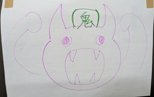 「鬼は外~!福は内~!」 元気な声とともに、ターゲットにしたのは……なんと妻が描いたお手製の「鬼」!