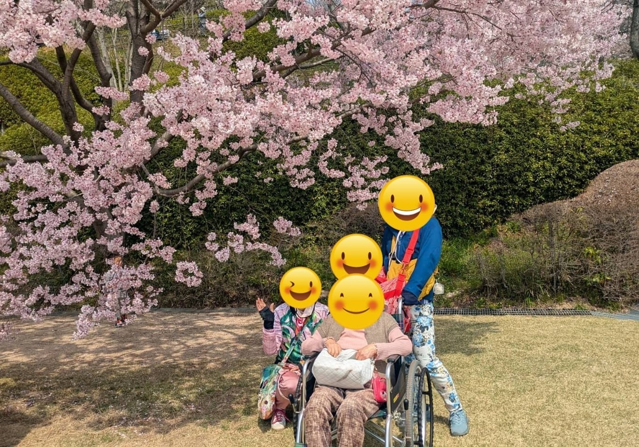 車椅子のお祖母様も一緒に桜の下を散策し、春のポカポカ陽気のなか、みんなで買ってきたお弁当を広げて美味しくいただきました。桜以外の花々も色鮮やかに咲き誇っていて、息子も大喜びの様子でした。
